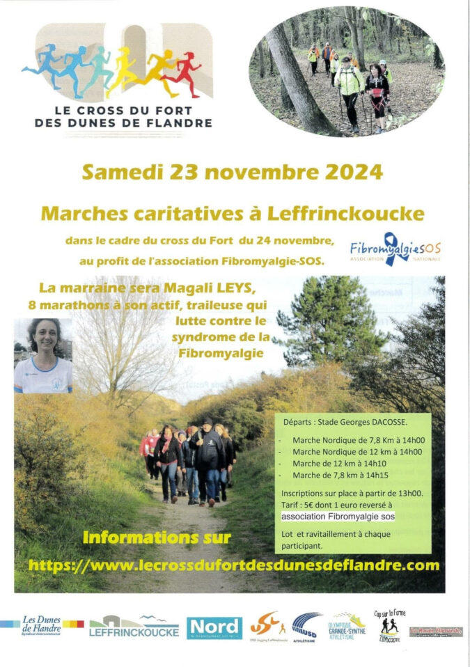 3ème édition du Cross des Dunes de Flandre Comme l’année dernière, Magali, fibromyalgique depuis 20 ans, adhérente à notre association, est marraine des marches du cross du fort des dunes de Flandre en faveur de la recherche pour la fibromyalgie.  1€ sera reversé à notre association FibromyalgieSOS pour chaque inscription aux marches caritatives du samedi 23 novembre. Magali…