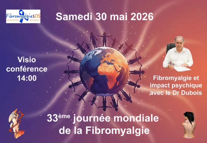 Journée mondiale de la fibromyalgie 2026   À l’occasion de la journée mondiale de la fibromyalgie, une rencontre en ligne sera organisée le samedi 30 mai 2026 afin d’informer et d’échanger autour de cette maladie chronique qui touche de nombreux patients. Visioconférence : Fibromyalgie et impact psychique Cette visioconférence portera sur le thème « Fibromyalgie…