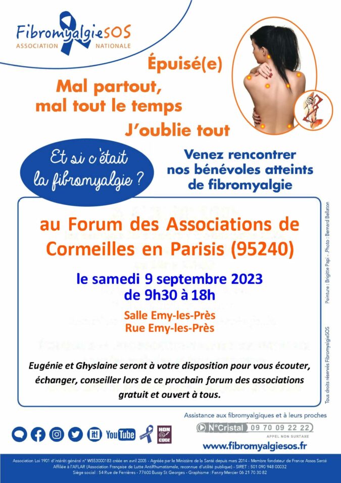 Journée “Douleur” à Ermont (95) samedi 7 octobre 2023 La clinique Claude Bernard à Ermont (95), en partenariat avec la ville d’Ermont, organise une journée consacrée à la douleur. C’est le moment de venir nous rencontrer, FibromyalgieSOS, votre association, y sera présente toute la journée et vous donne rendez-vous Le samedi 7 octobre 2023 de 10…