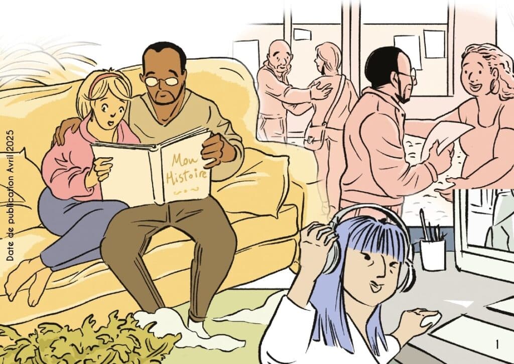 Convaincue qu’un format accessible et pédagogique peut toucher un public plus large, l’association a réalisé, en collaboration avec l’association “Trois Petits Points” et illustrée par Valentina Principe avec la participation de Jérôme Laniau, une bande dessinée.