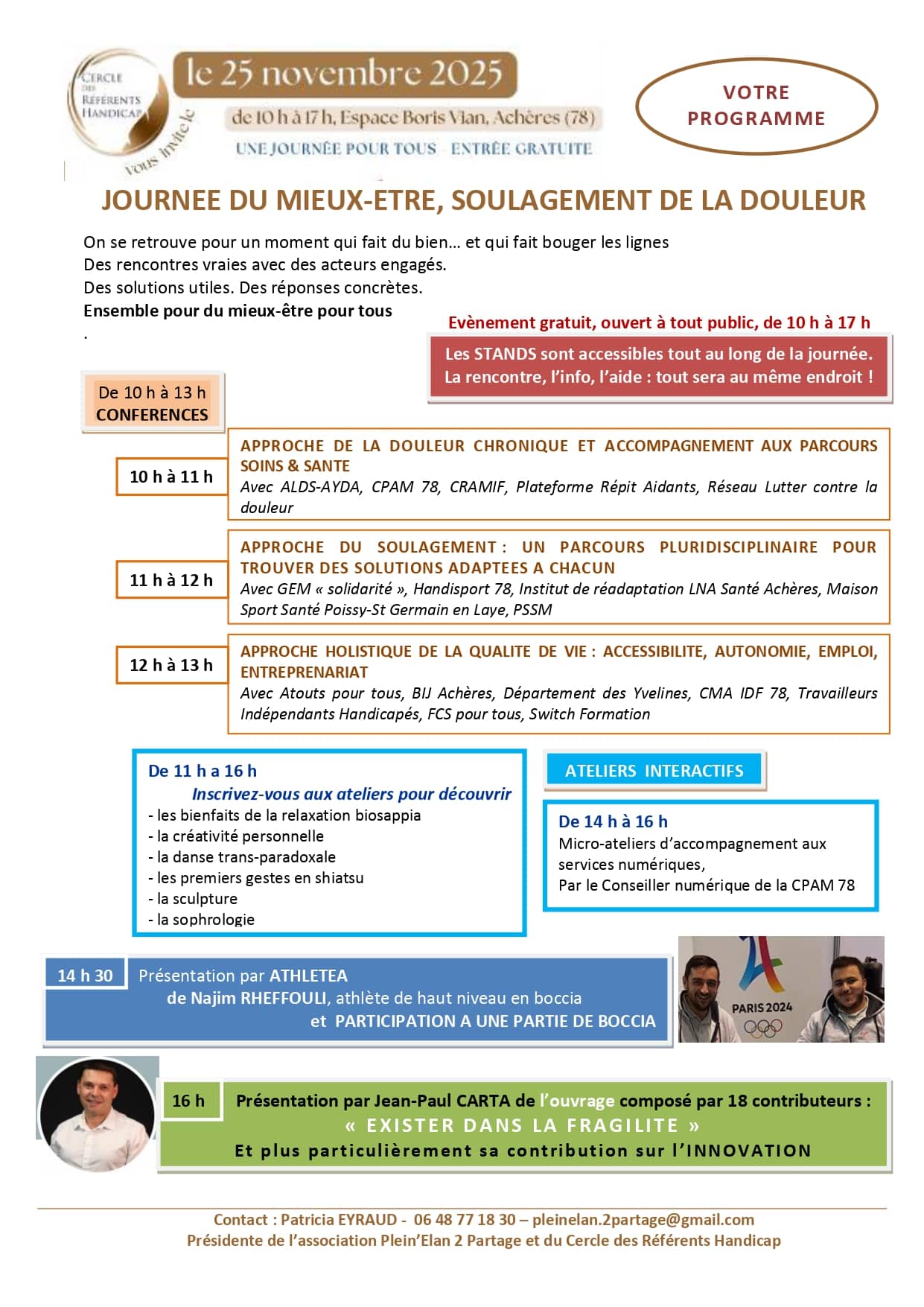 Nadine Randon, présidente de FibromyalgieSOS, sera là pour vous écouter, échanger, conseiller lors de cette journée gratuite et ouverte à tous.