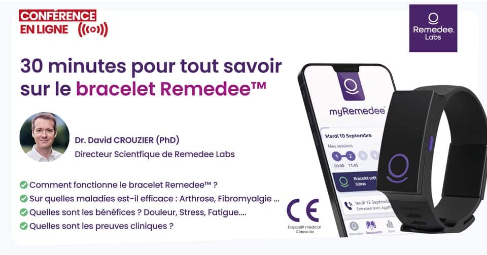 Ces sessions permettent de découvrir comment le bracelet Remedee™ agit sur la douleur, la fatigue et le sommeil, et quelle solution (FibroRem™ ou NoviRem™) est la plus adaptée à chaque situation.