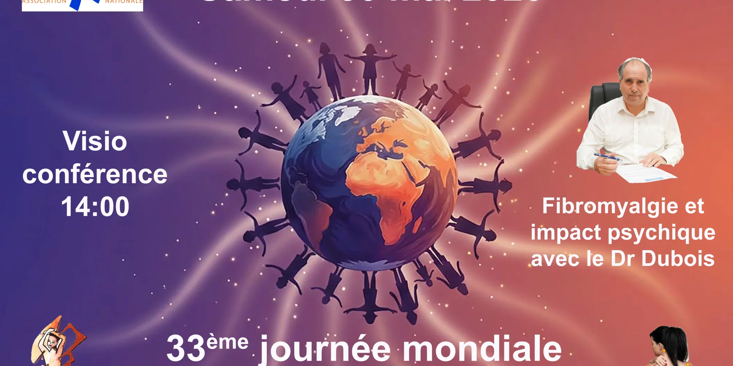 Cette visioconférence portera sur le thème « Fibromyalgie et impact psychique ». Elle permettra d’aborder les conséquences psychologiques de la maladie, les difficultés rencontrées par les patients au quotidien, ainsi que les pistes d’accompagnement possibles.