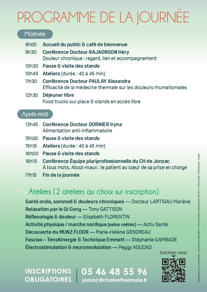 05 46 48 55 96 / jonzac@chainethermale.fr ou en scannant le QR Code sur l’affiche