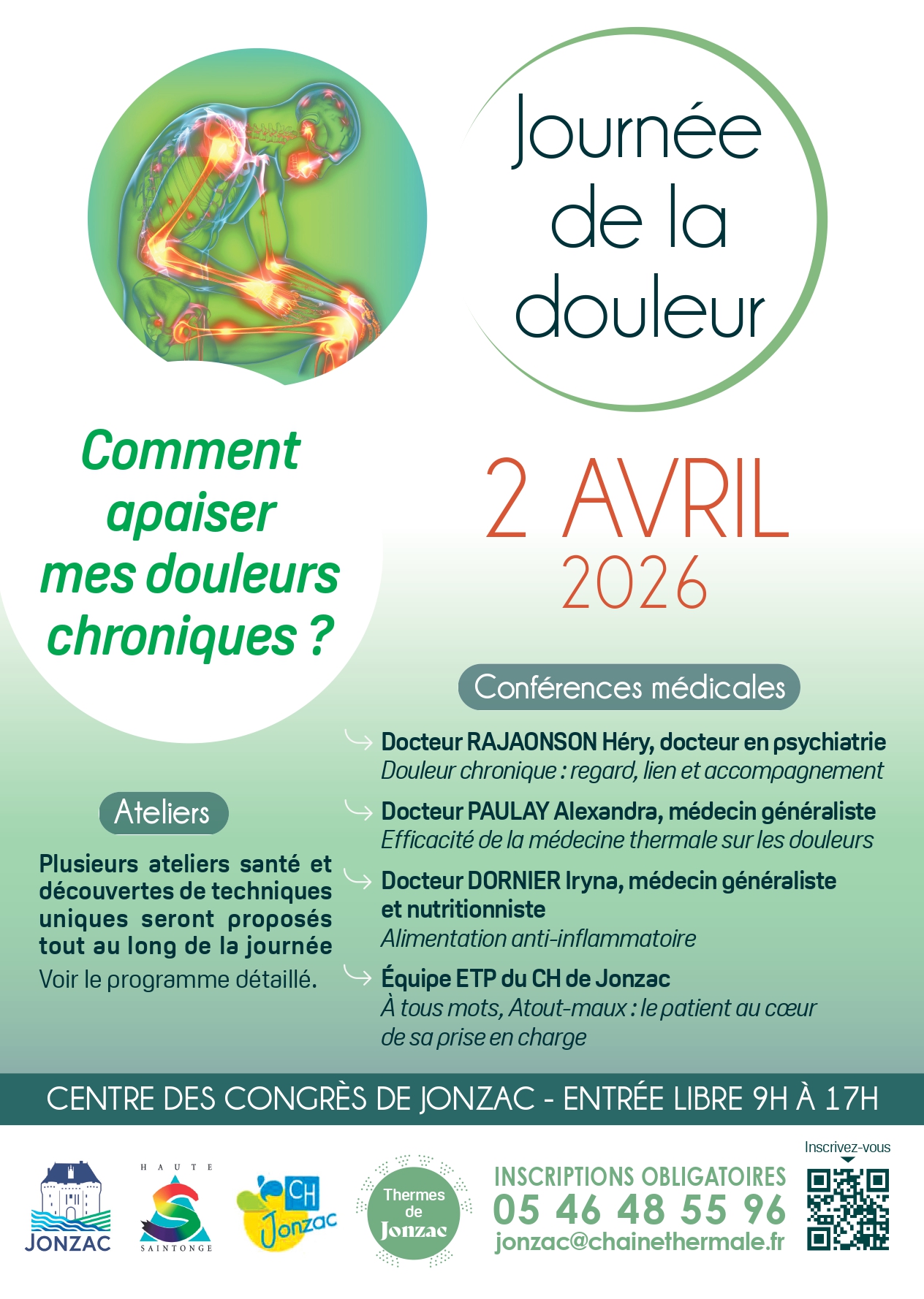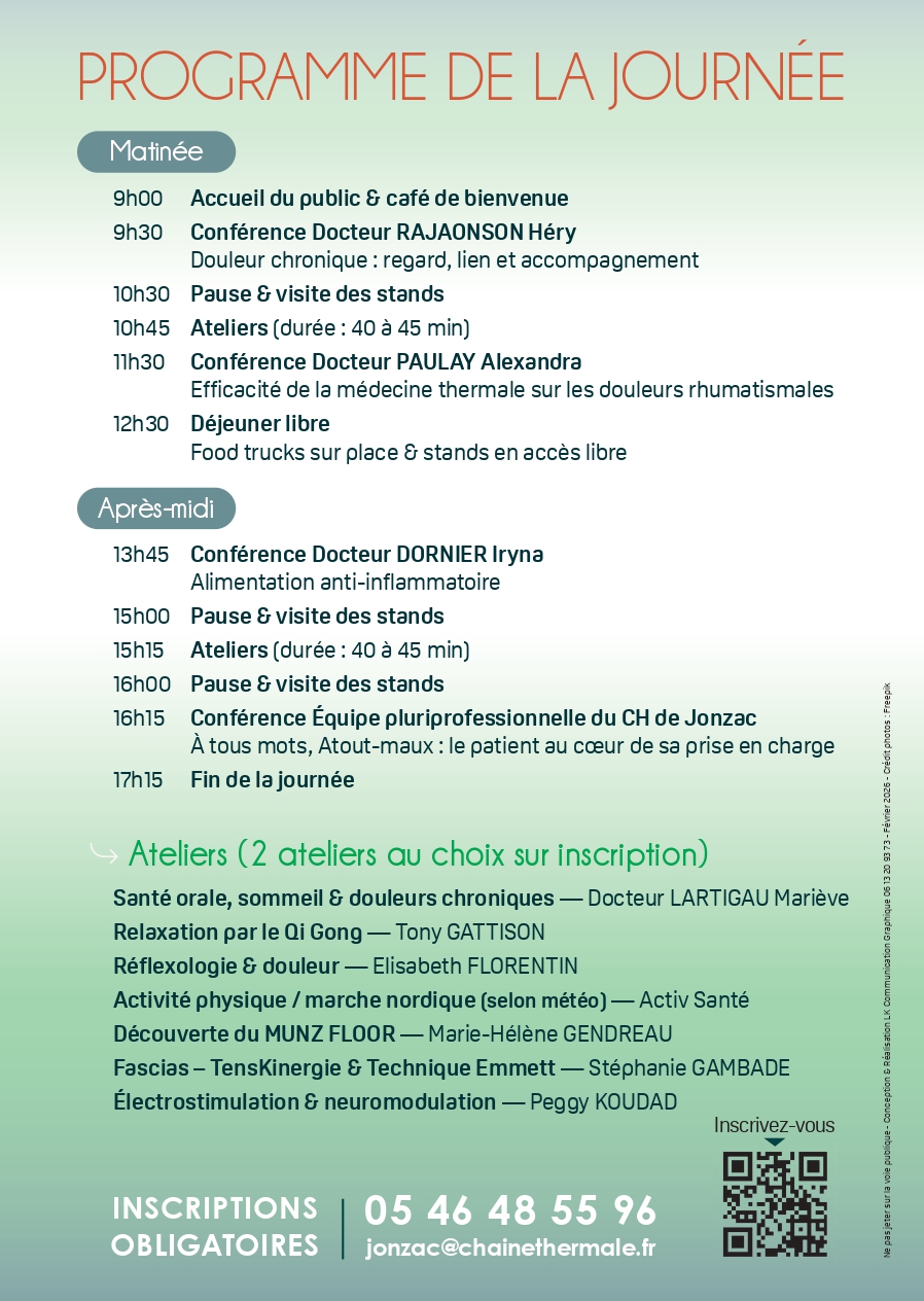 05 46 48 55 96 / jonzac@chainethermale.fr ou en scannant le QR Code sur l’affiche